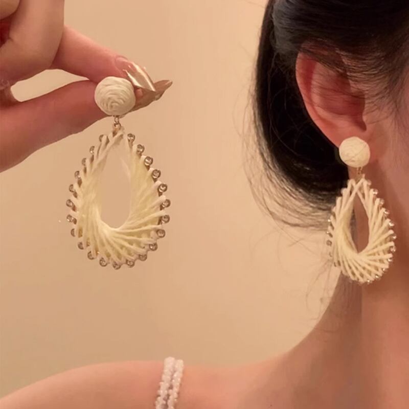 大ぶりピアスはしずく型やリボンデザインが特徴的で、民族風のテイストがコーディネートに華を添えます!友達とのお出かけや特別な日にも、自分らしさを表現できるアイテムです。