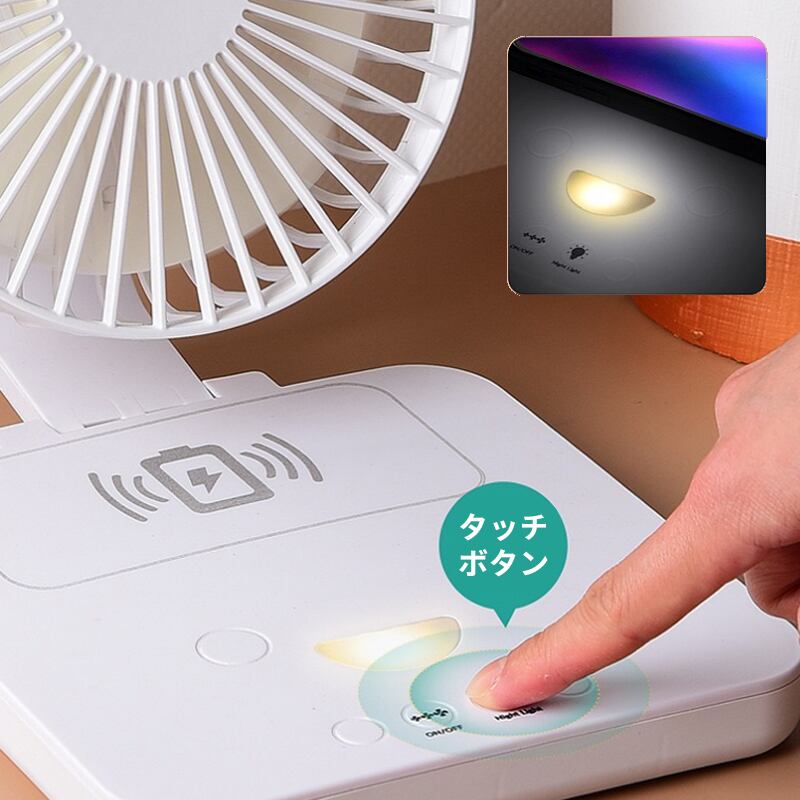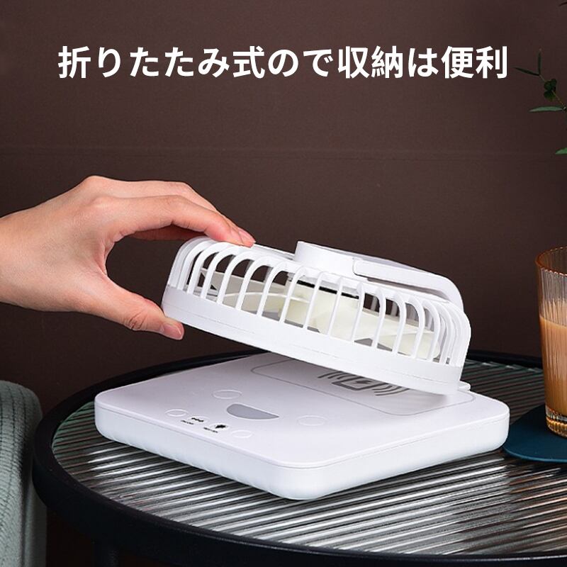 扇風機多機能 蚊よけリングおまけ付き 3段階風量調節 LEDライト 折りたたみ式 携帯電話の無線充電 卓上 USB充電式