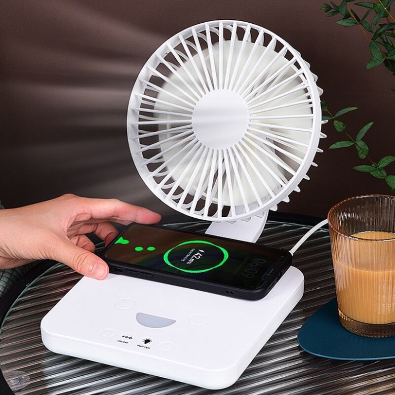 3段階の風量調節機能を搭載したこの扇風機は、暑い夏の必需品です。LEDライトも付いているため、夜のキャンプや屋外での使用にもぴったりです。さらに、携帯電話の無線充電機能も搭載しており、便利さが一段とアップ!折りたたみ式デザインで持ち運びも楽々ですので、外出先でも大活躍します♪