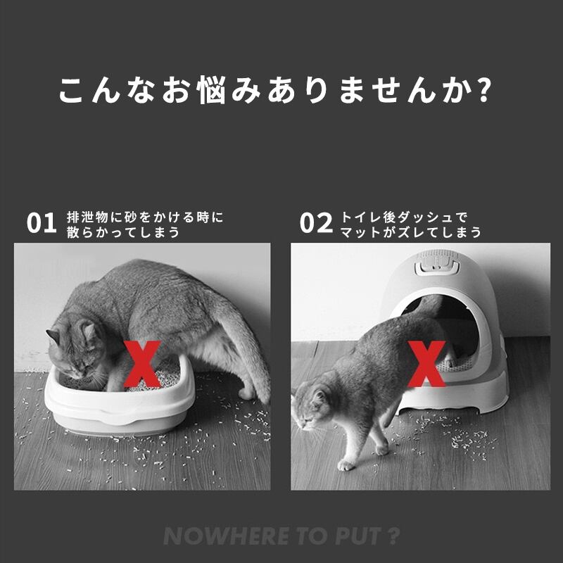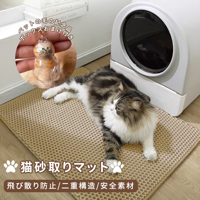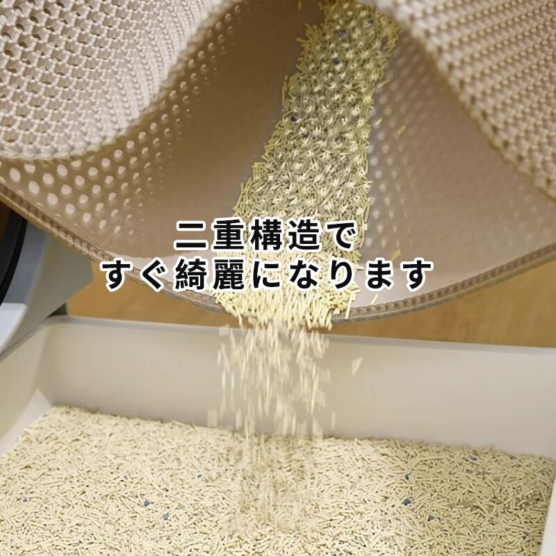 90x60cmの大きなサイズで、砂の飛び散りをしっかりキャッチする優れたアイテムです。猫砂が散らかるのを防ぎ、ペットの毛や汚れも簡単に取り除けるため、清潔な空間を保つことができます♪ 滑り止め加工が施されており、安心して使用できるのも魅力です。