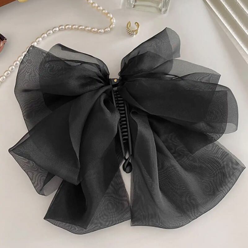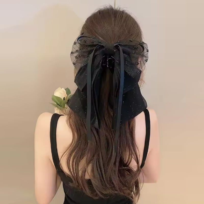 かわいい大きめのリボンが特徴のヘアアクセサリーです。光沢のある上品な素材感が魅力で、お出かけやデイリー使いにぴったりのアイテムです♪ 普段のスタイルにアクセントを加え、素敵なヘアアレンジを楽しむことができます。