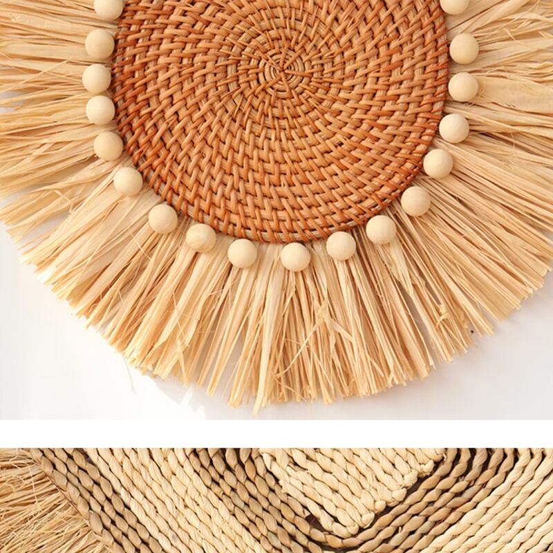 編まれたわらの壁掛け装飾籐タペストリー飾りセット 壁掛け装飾飾り手織り壁掛け